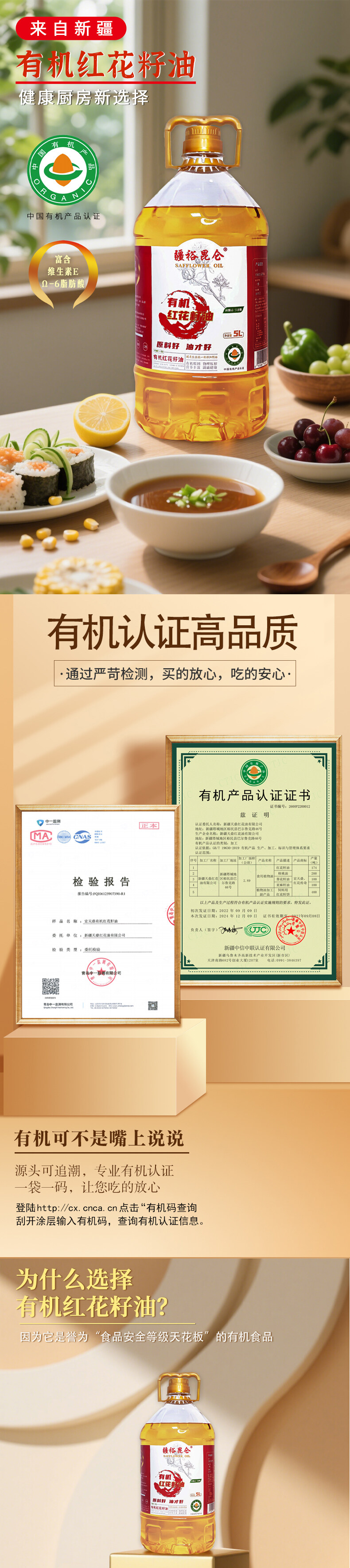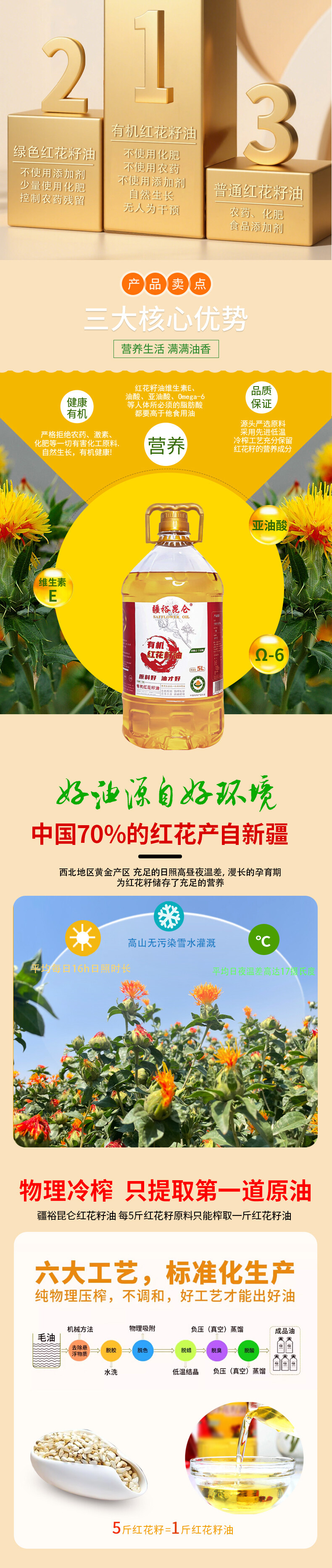 疆裕昆仑有机红花籽油5L/桶