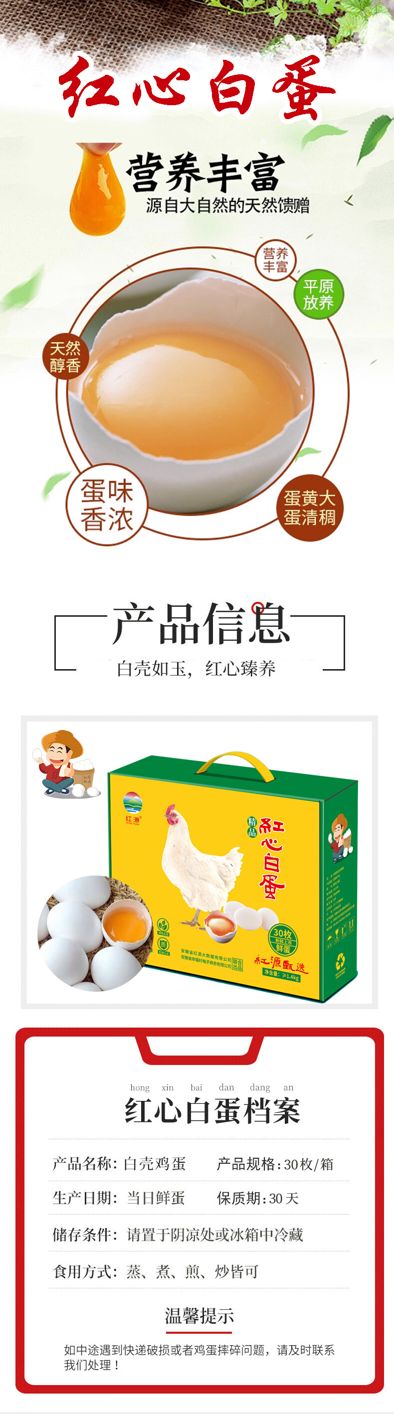 红心白壳鸡蛋30枚/箱 鲜蛋鲜发