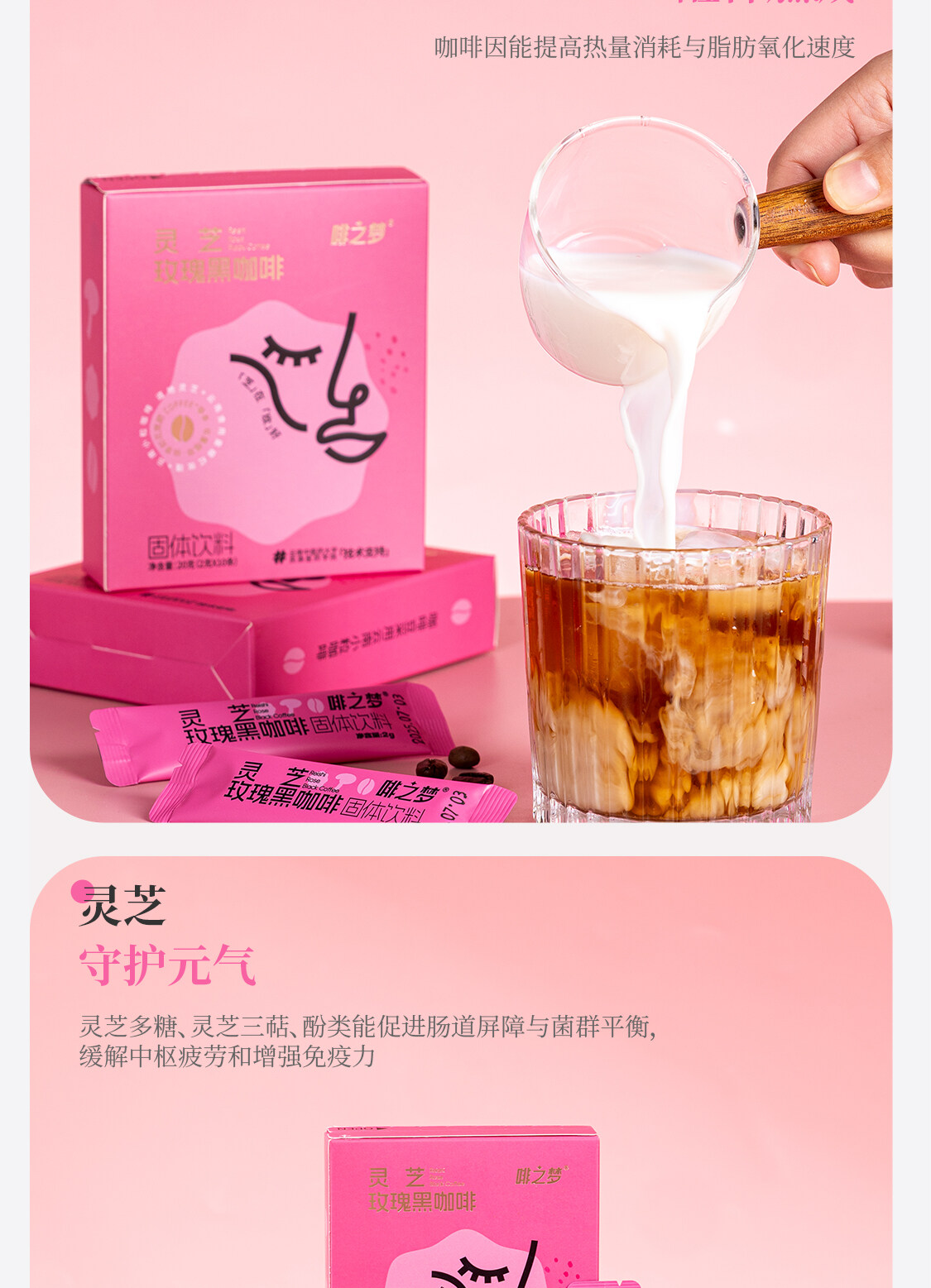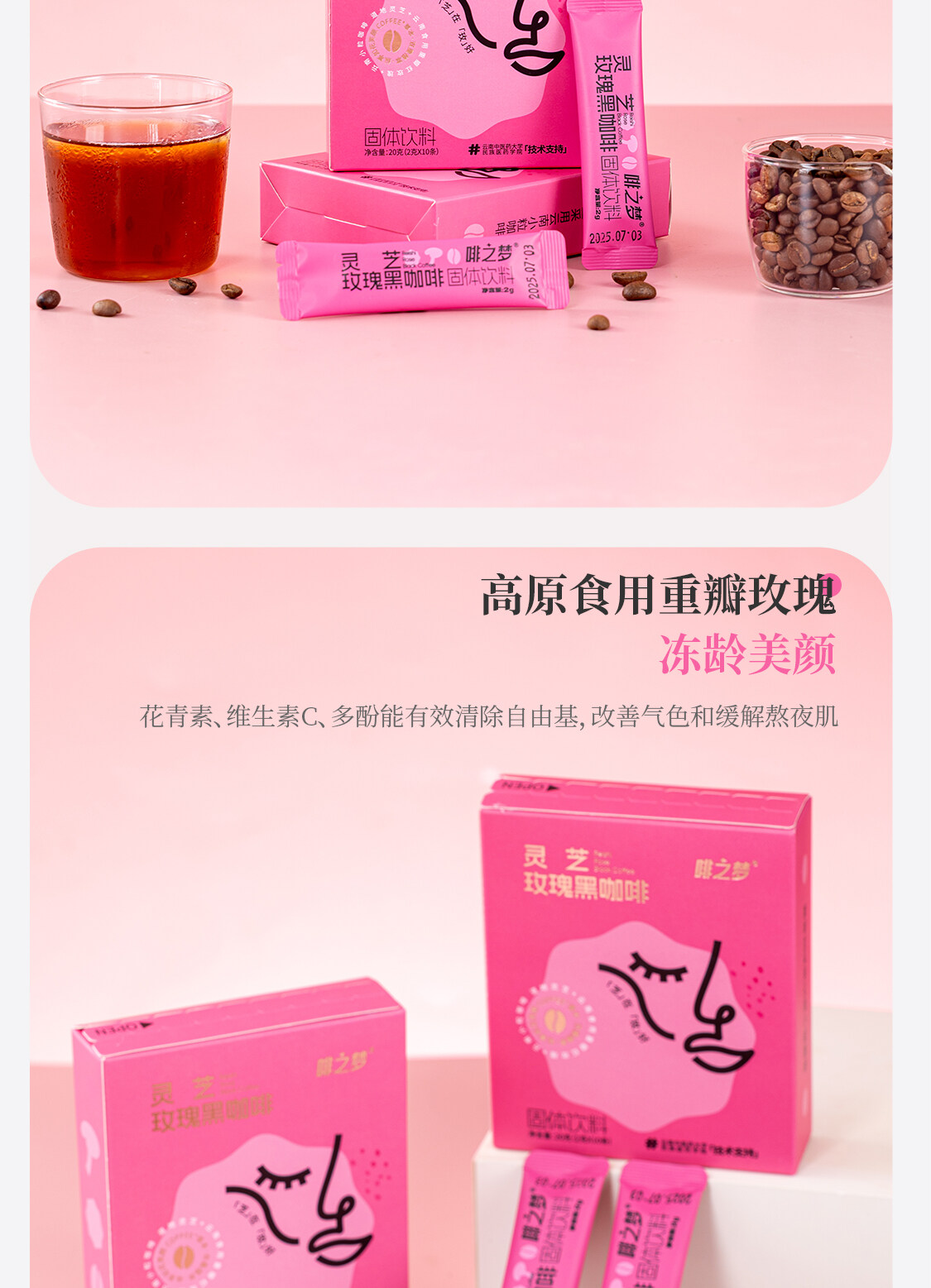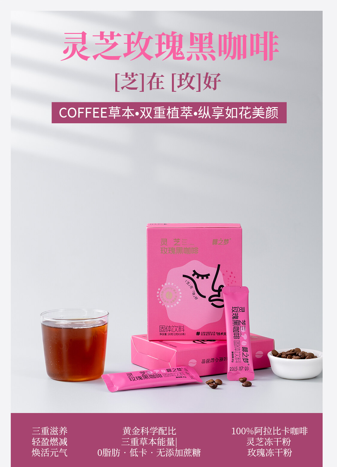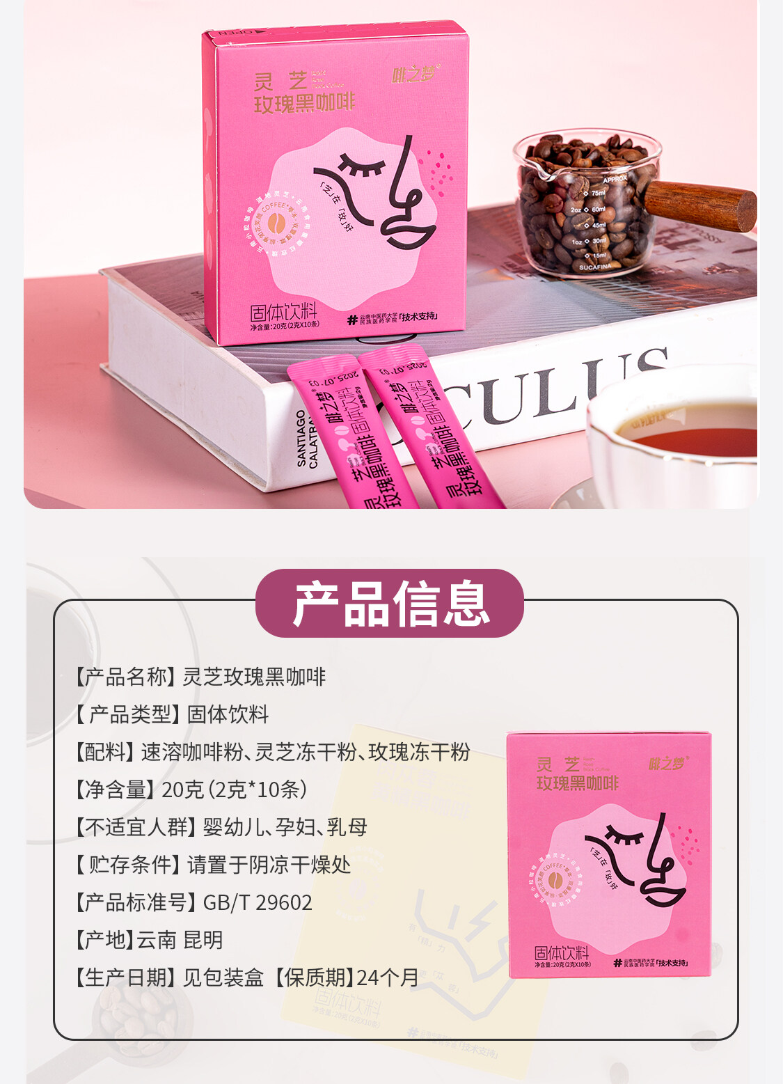 灵芝玫瑰黑咖啡2g*10条/盒