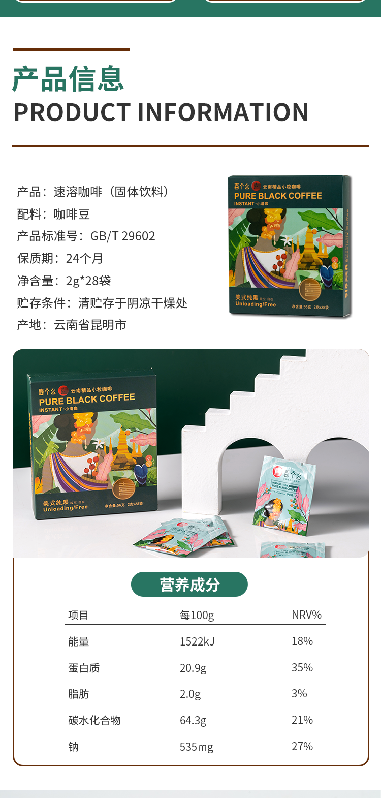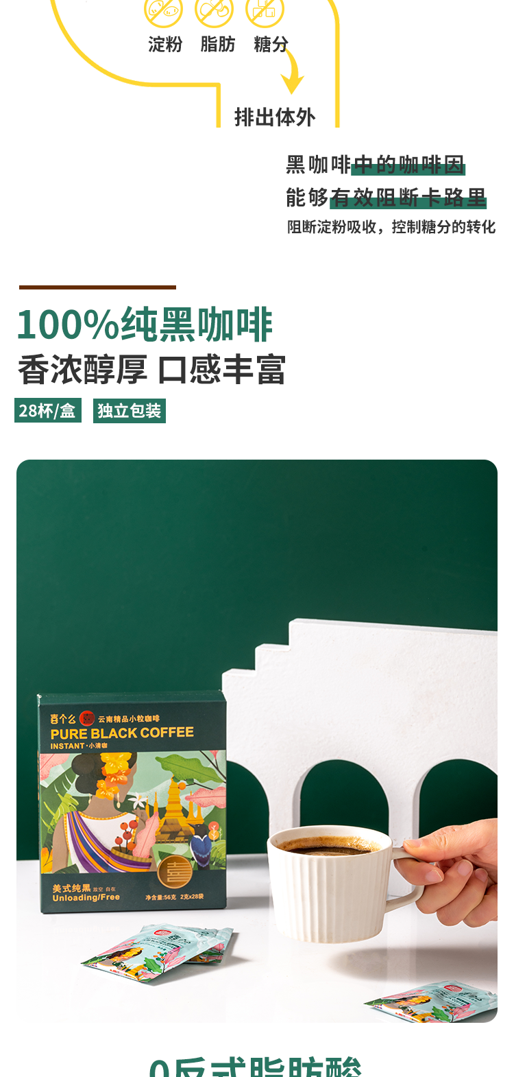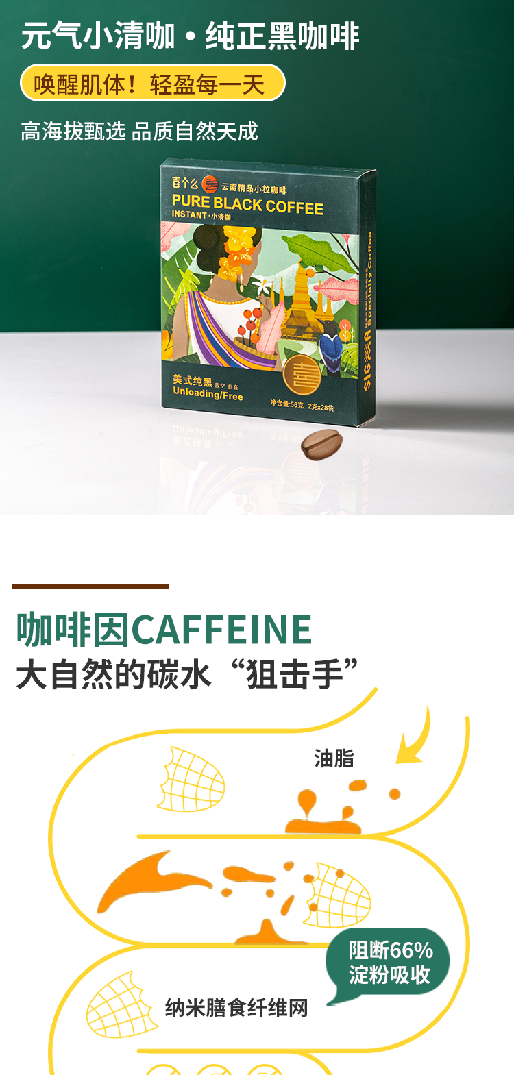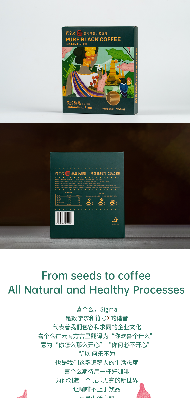 喜个么速溶小清咖美式黑咖啡方盒2g*28袋/盒