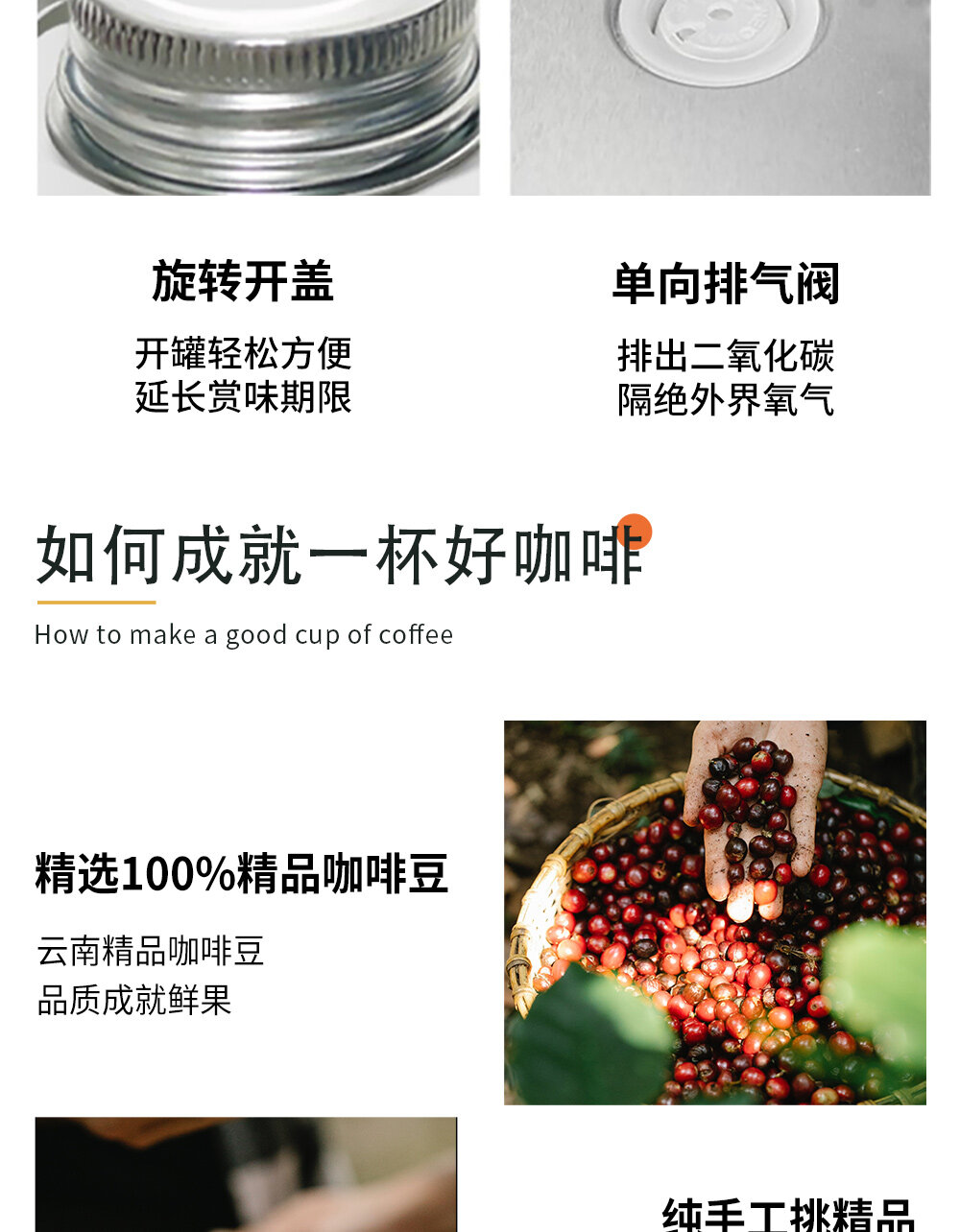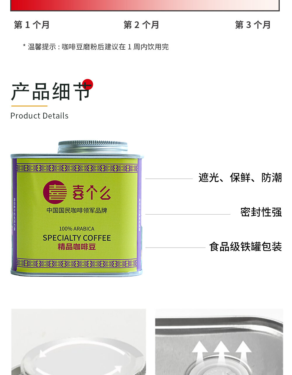 喜个么精品醉倾城咖啡豆云南小粒日晒新鲜烘焙单品手冲红酒摩卡壶罐装150g