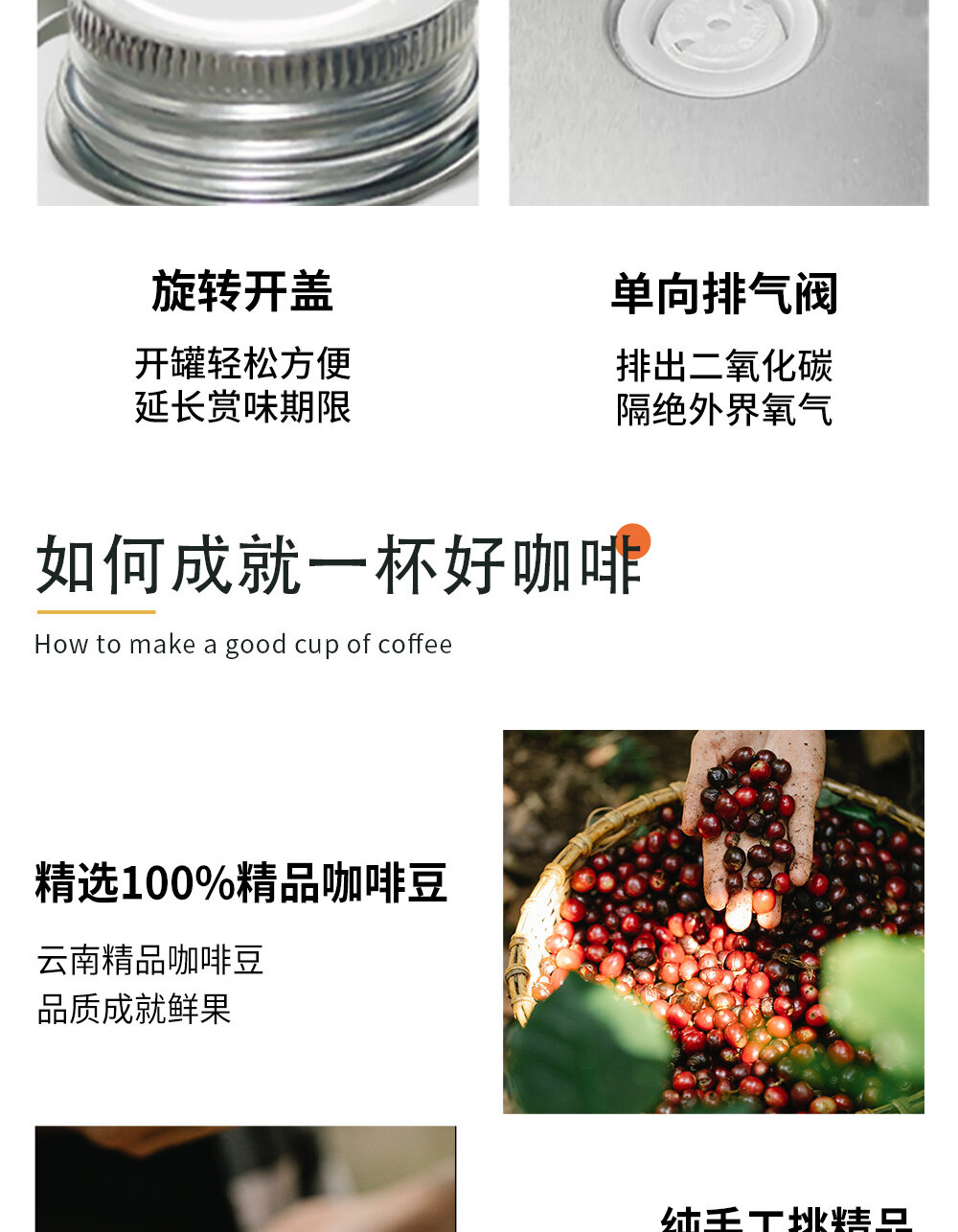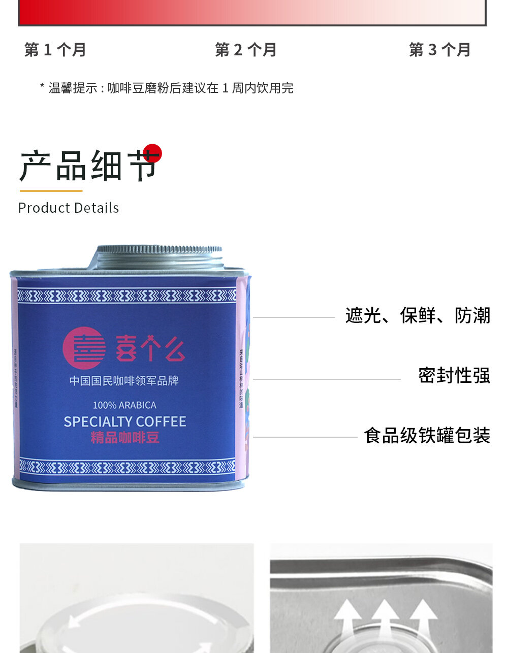 喜个么云南精品手冲咖啡豆铁皮卡水洗浅度烘焙罐装150g新鲜烘焙