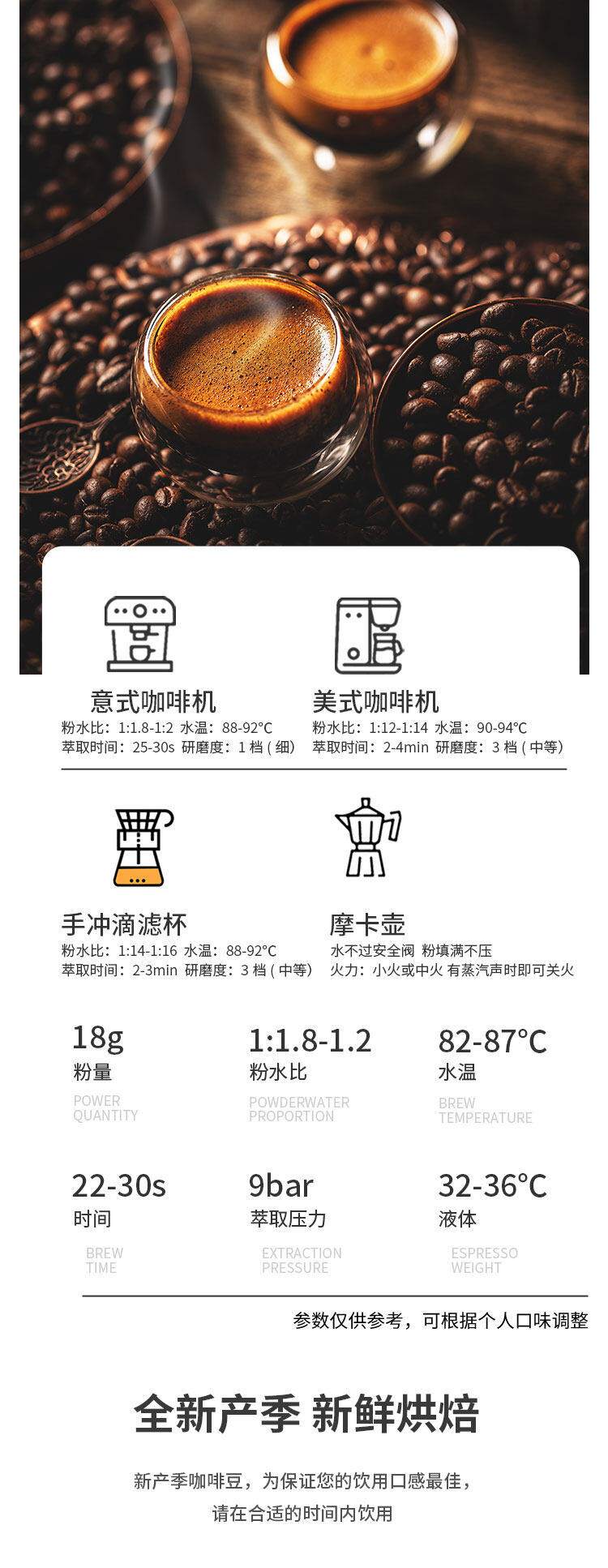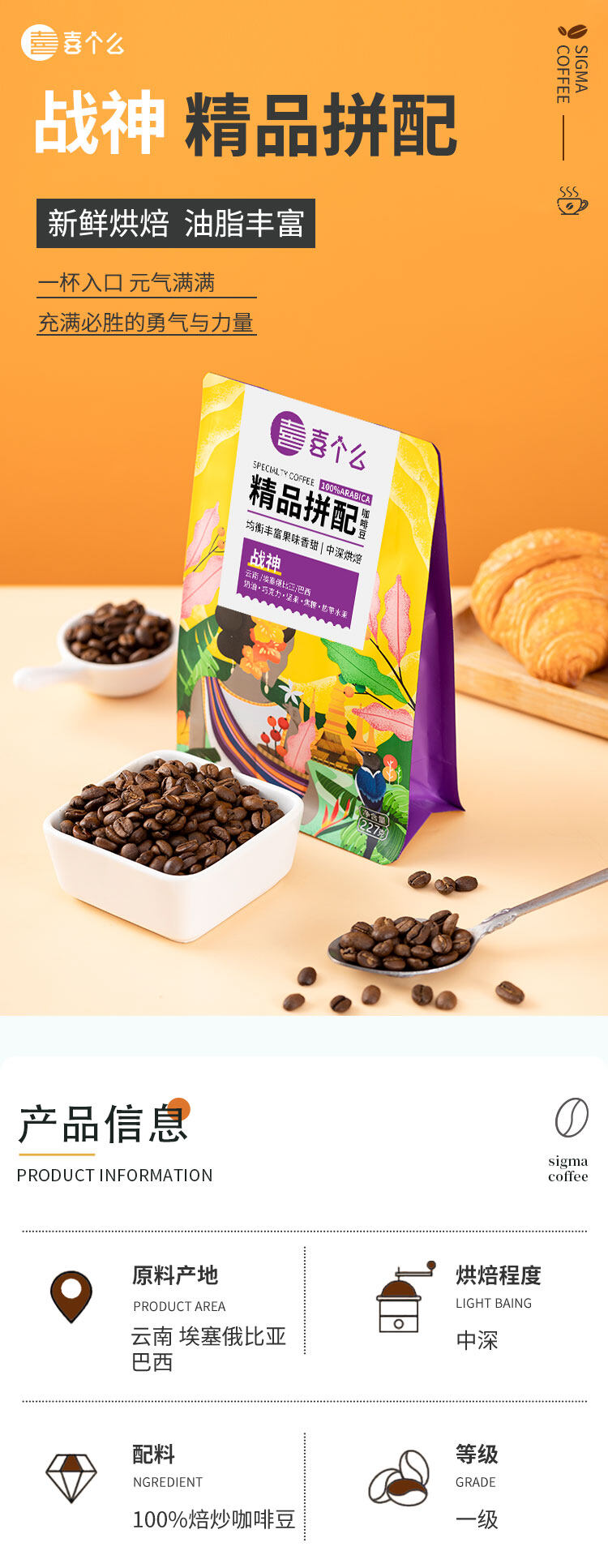战神喜个么精品意式拼配咖啡豆浓郁美式拿铁黑咖啡中深烘焙商用227g