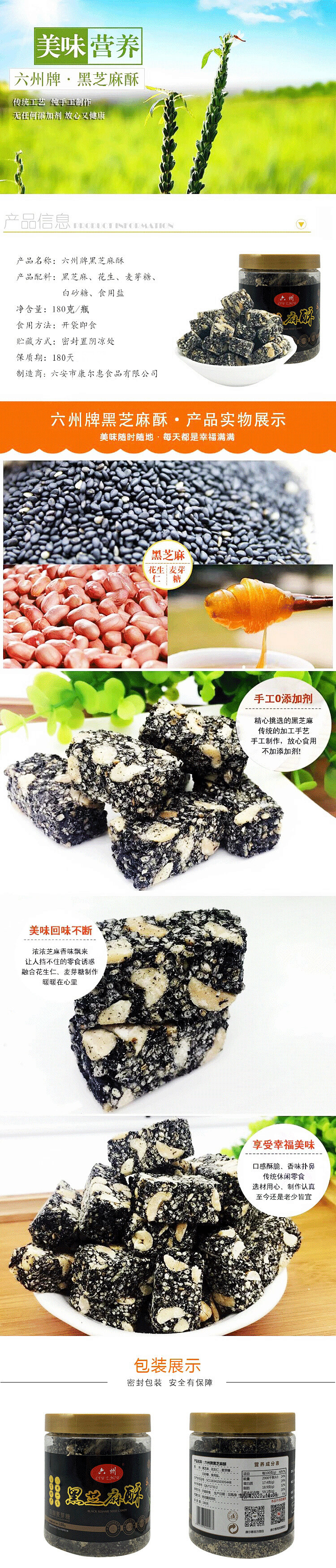 六安徐集特产 六州罐装黑芝麻酥180g
