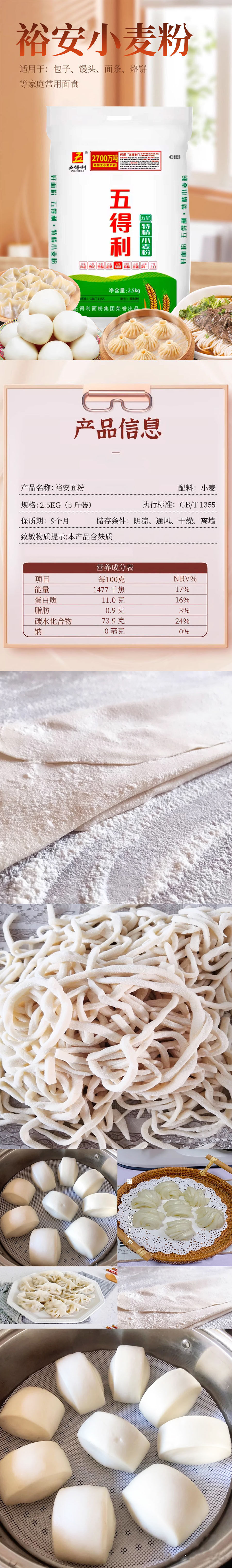 裕安面粉2.5kg小麦粉馄饨馒头饺子家用小麦粉5斤装