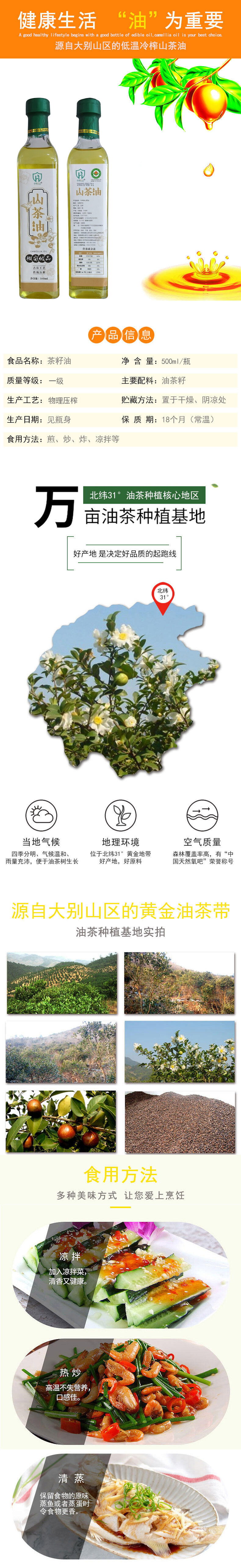 裕安优品 华养牌裕安山茶油500ml/瓶