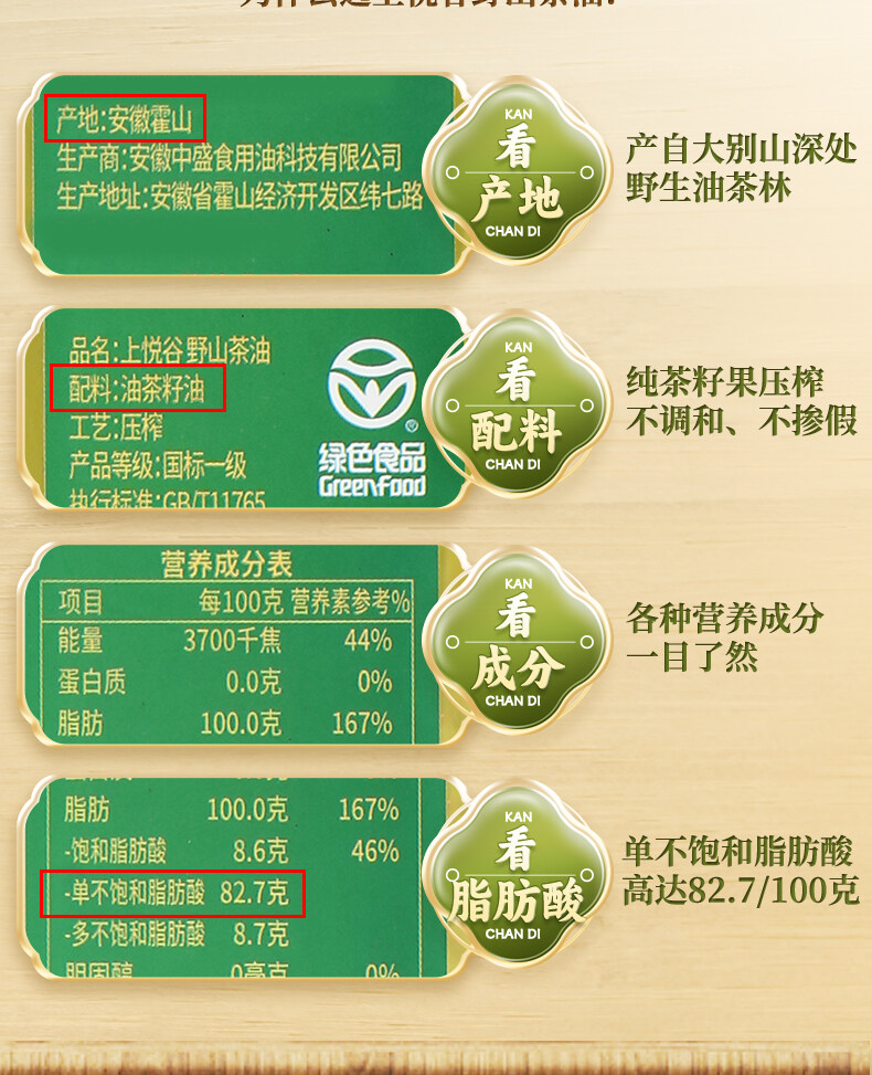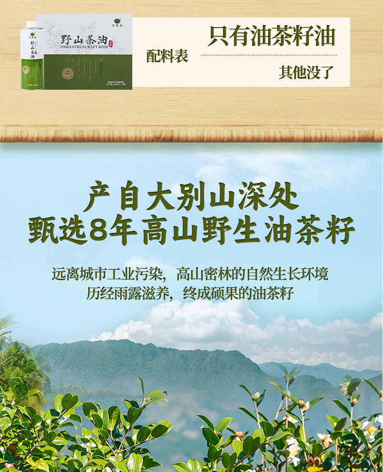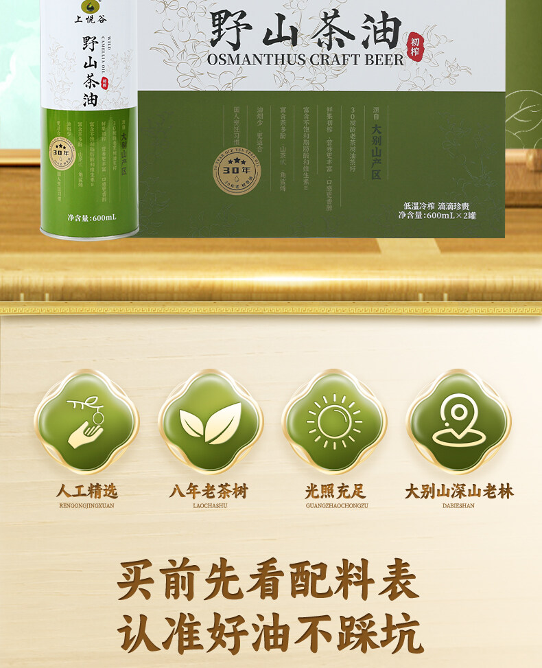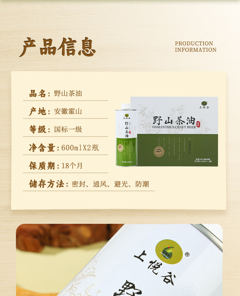 上悦谷30年老树初榨野山茶油600ml*2商务礼盒