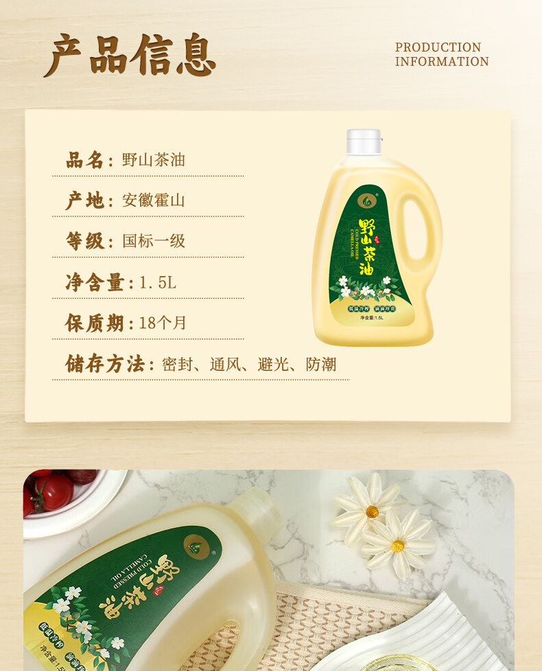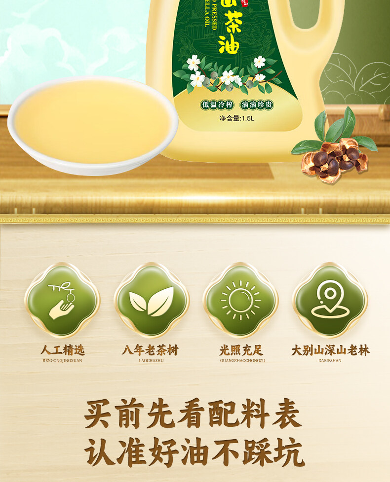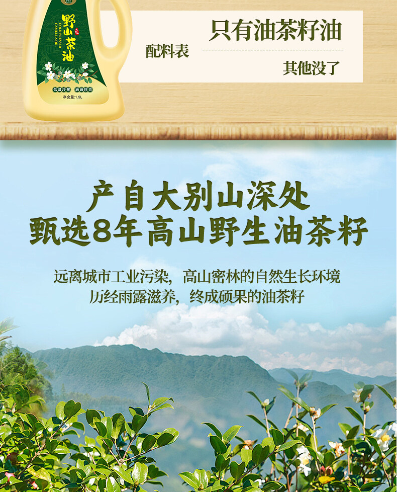 上悦谷野山茶油1.5L家庭装