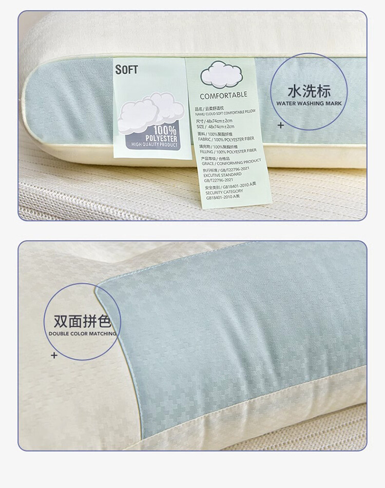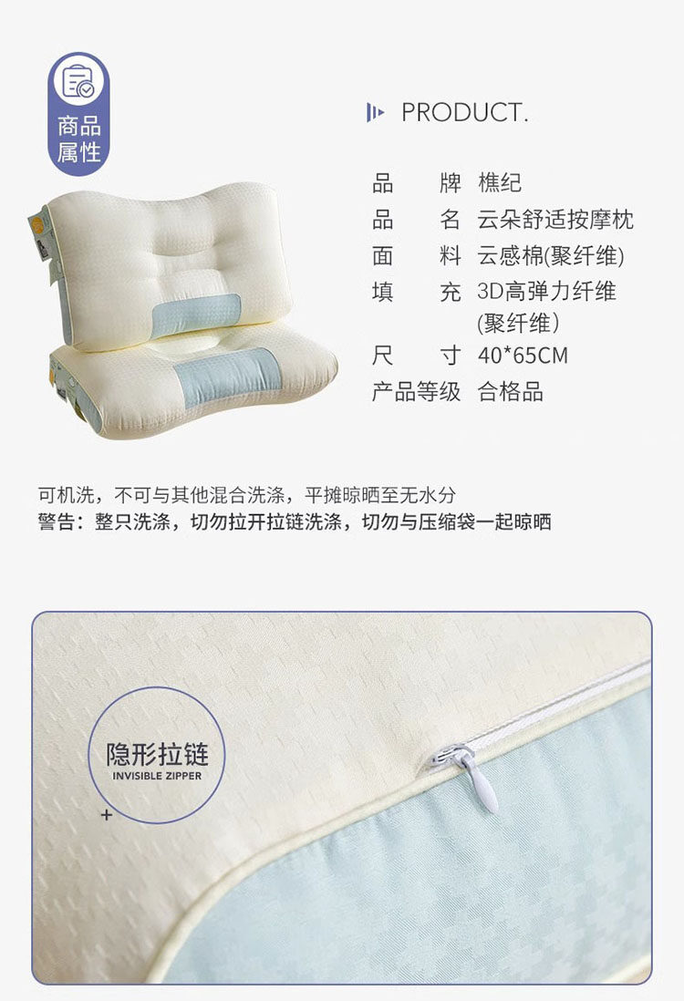 樵纪 3D高弹力云朵舒感提花拼色SPA枕