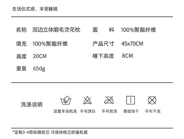 樵纪 3D高弹力双边立体磨毛烫花枕