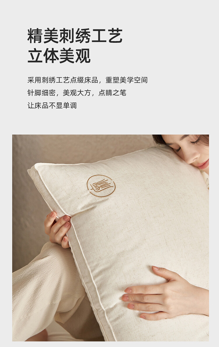 樵纪 侘寂风素麻混纺双边立体滚边刺绣枕