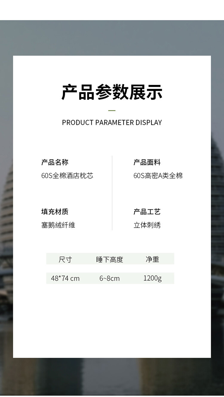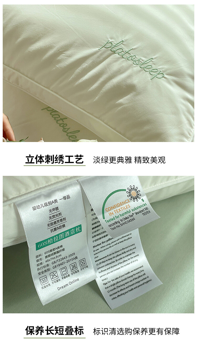 樵纪 A类60支全棉双边立体赛鹅绒柏拉图酒店枕