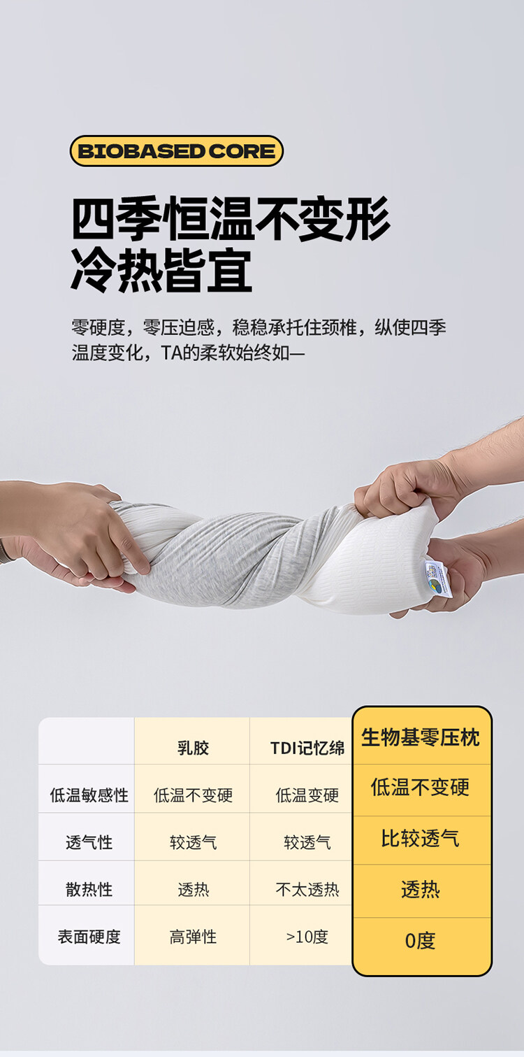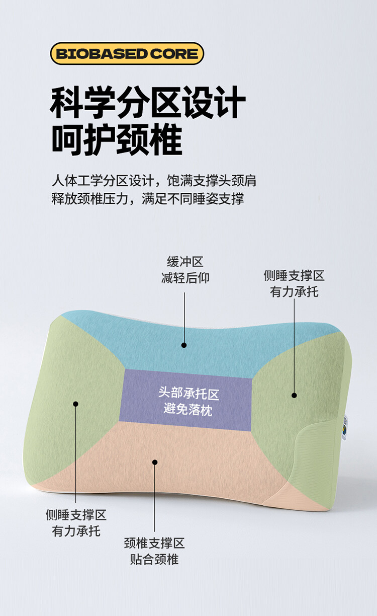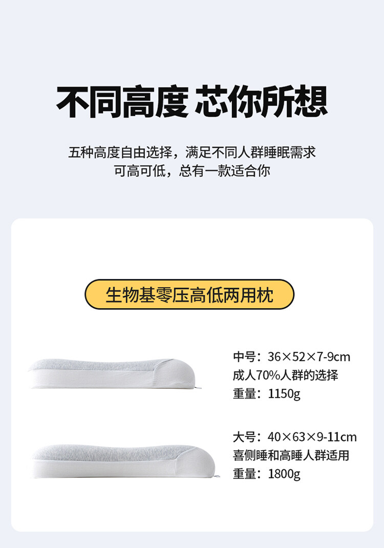 樵纪 100D裸感生物基0度绵零压A类高低两用分区SPA枕