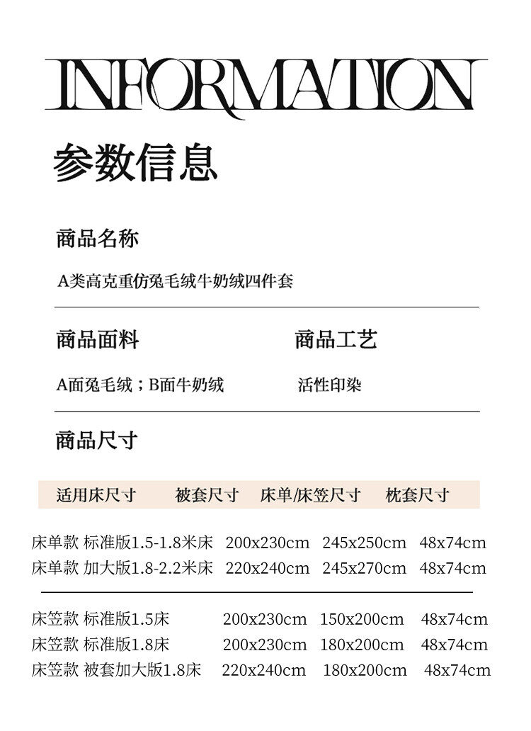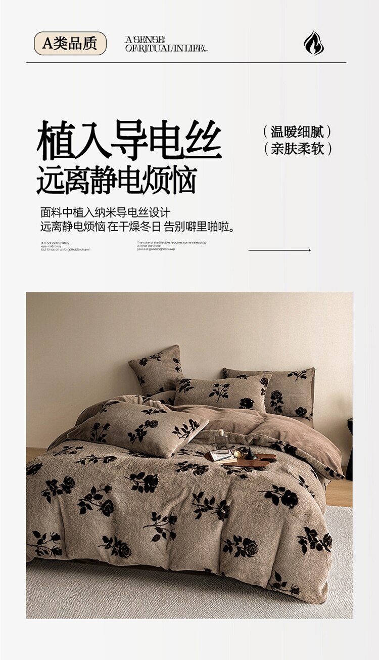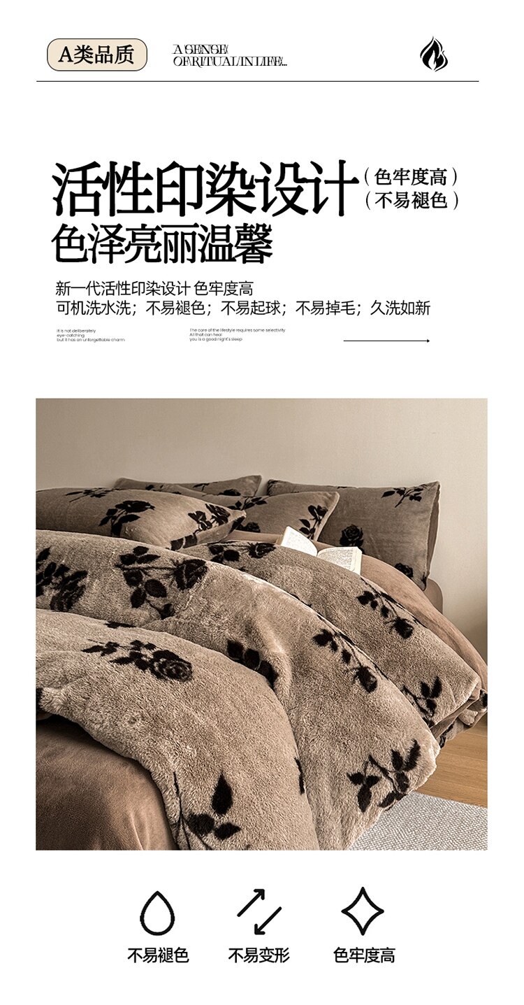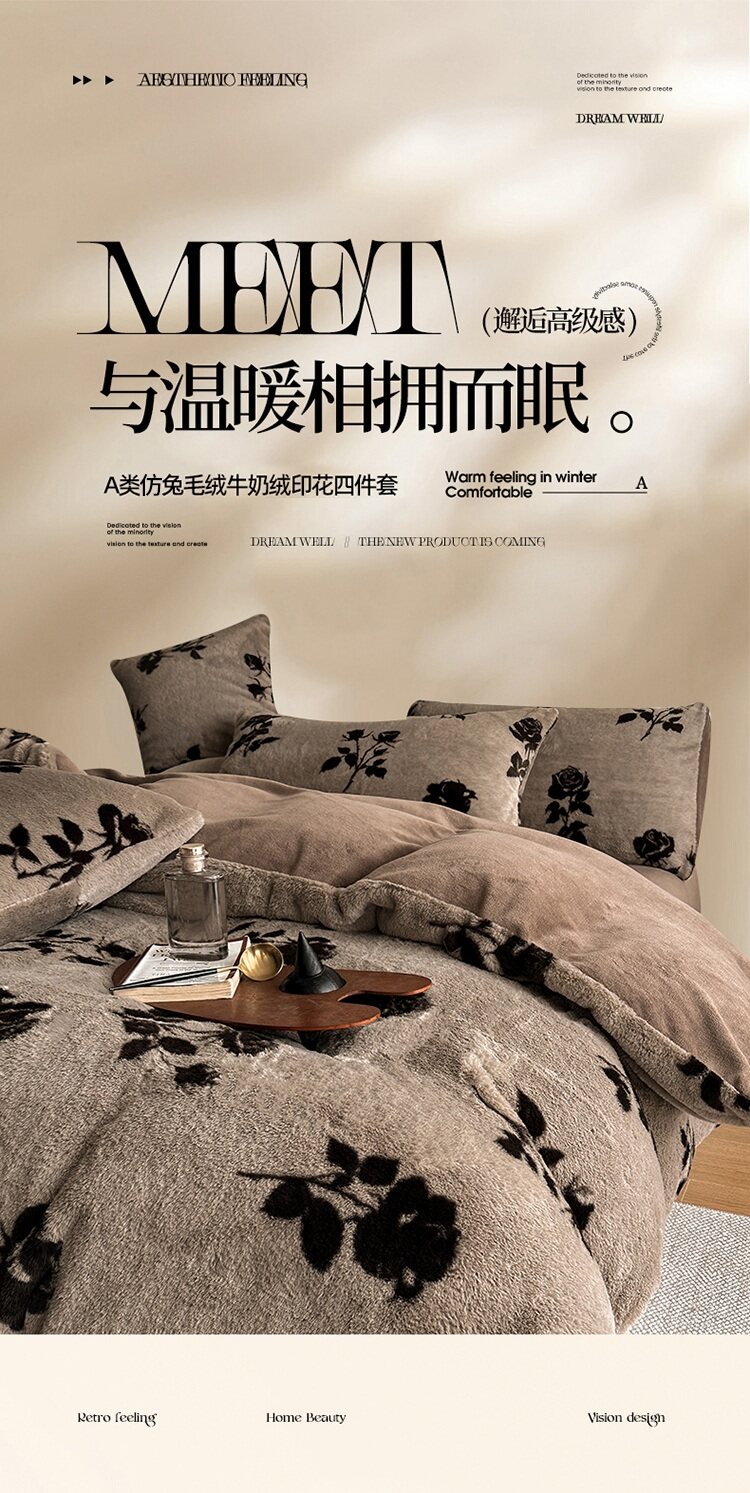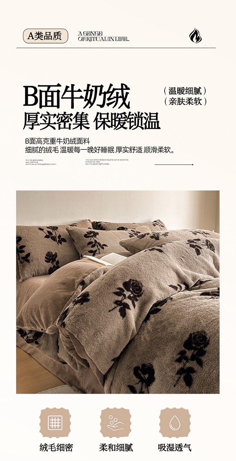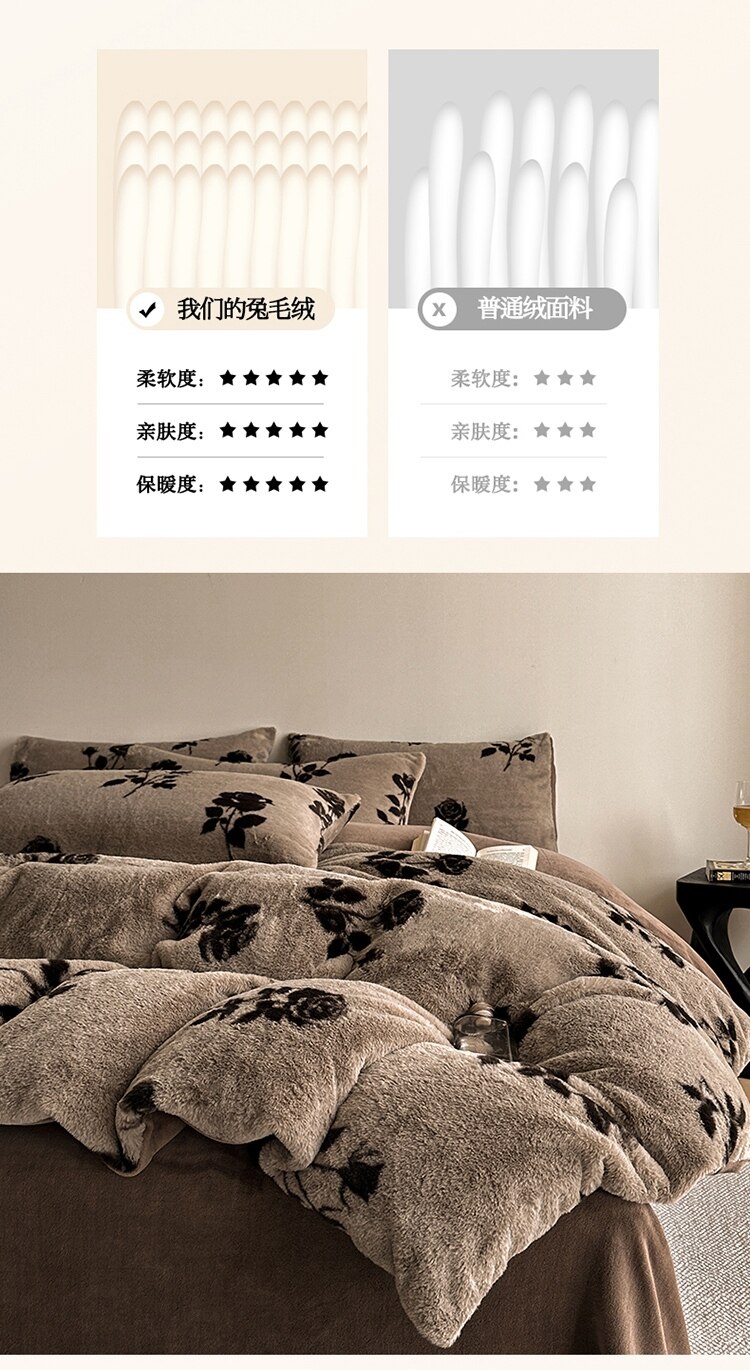 樵纪 高克重仿兔毛绒牛奶绒四件套