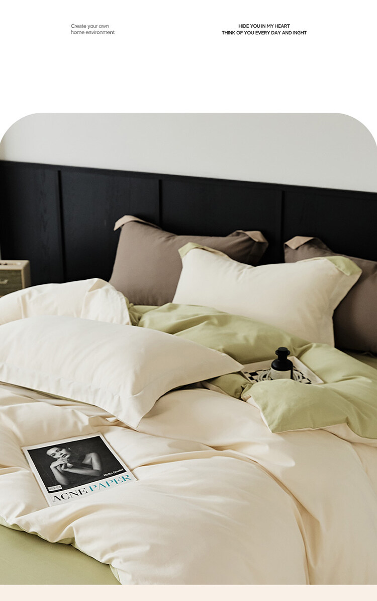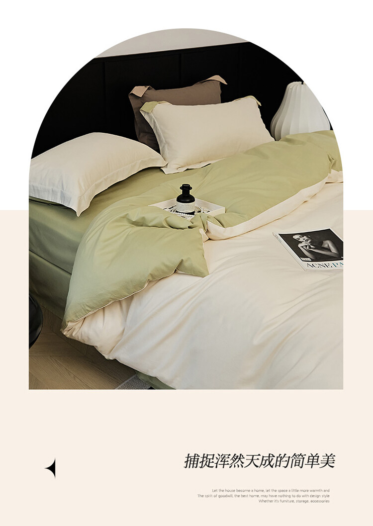 樵纪 50支双股长绒棉磨毛拼色邂逅系列四件套
