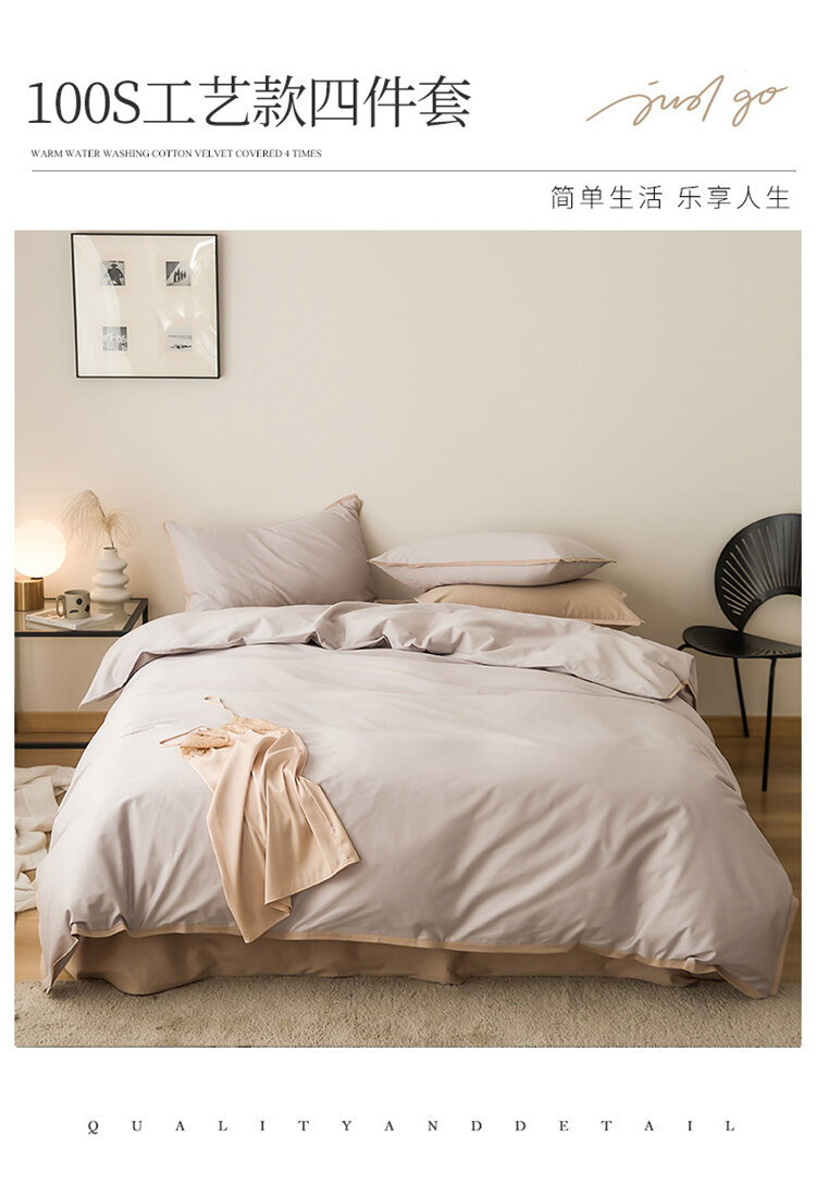 樵纪 50支双股长绒棉窄边工艺款四件套
