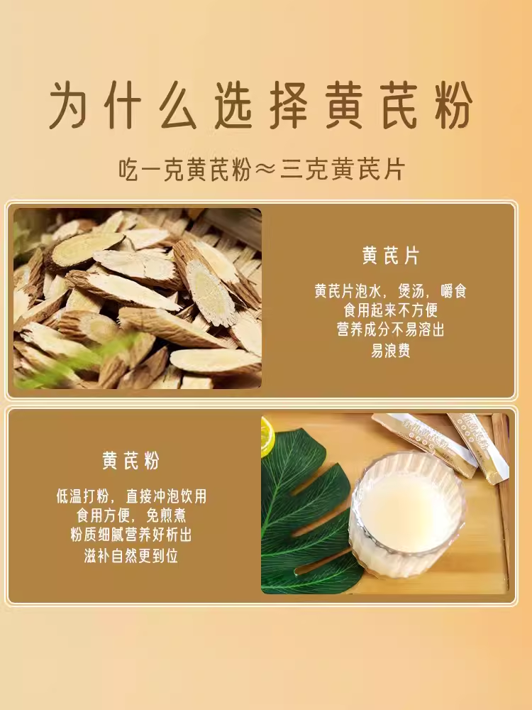 芪缘—有机黄芪超细粉来自内蒙古包头市北纬四十一度固阳县居家、办公、户外、携带方便独立包装牛奶、豆浆伴侣