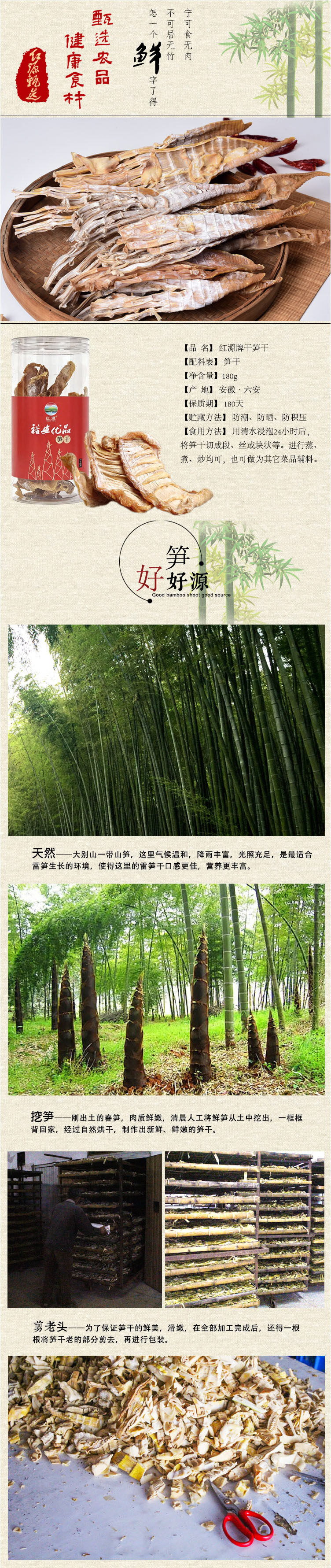 裕安优品 红源牌笋干 农家自制干笋180g/罐