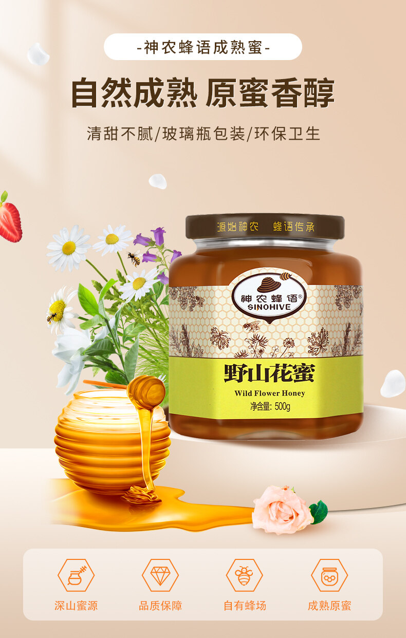 神农蜂语野山花蜜500g/瓶