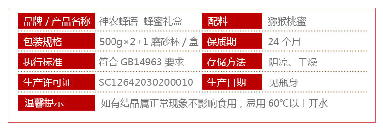 神农蜂语精品蜂蜜礼盒装500g*2瓶/提