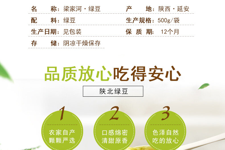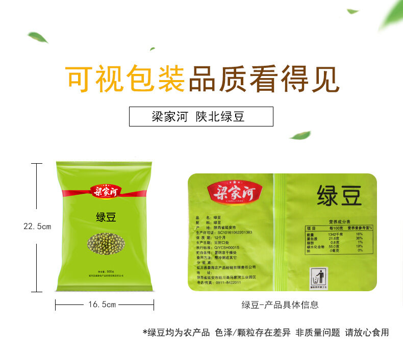 梁家河500g袋绿豆 新鲜绿豆五谷杂粮农家 绿豆特产
