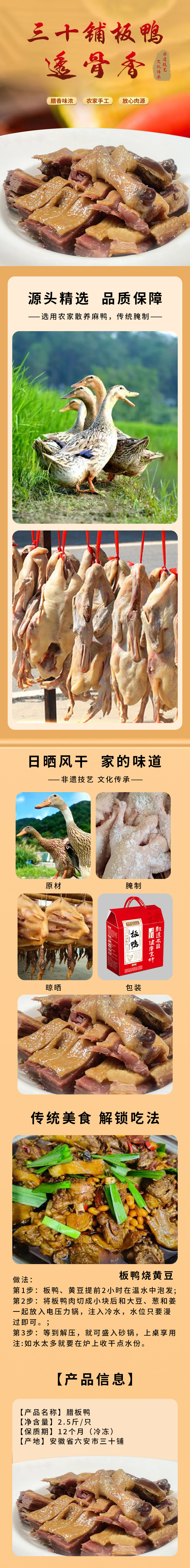 幸福村牌三十铺腊板鸭1只/盒