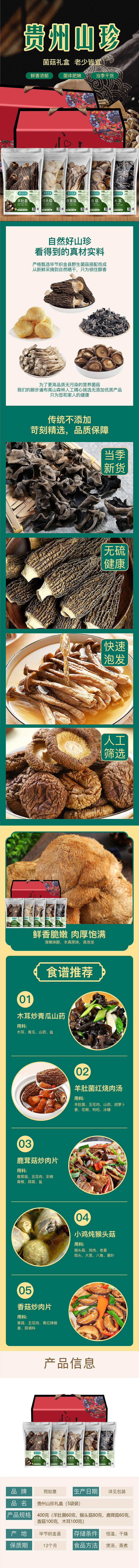 (袋装:羊肚菌60克,猴头菇80克,香菇100克,木耳100克,鹿茸菇60克)
