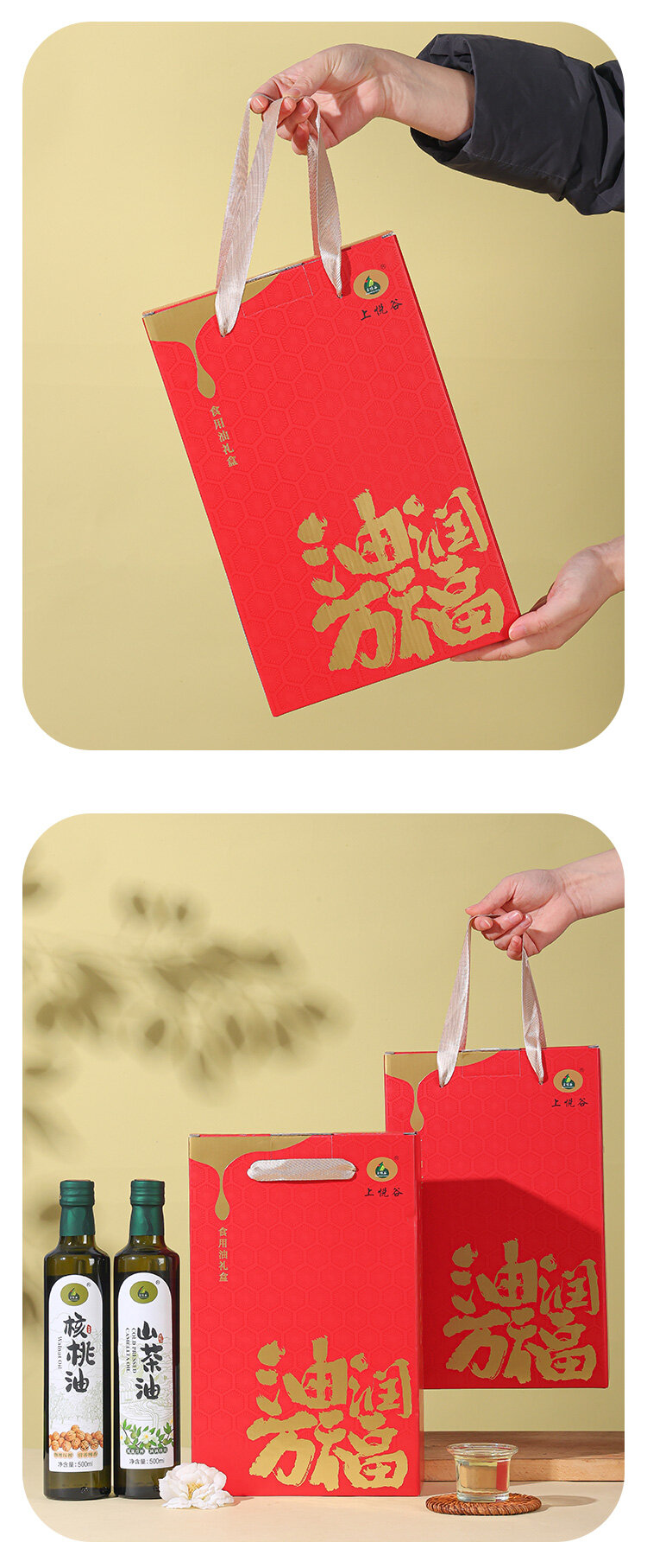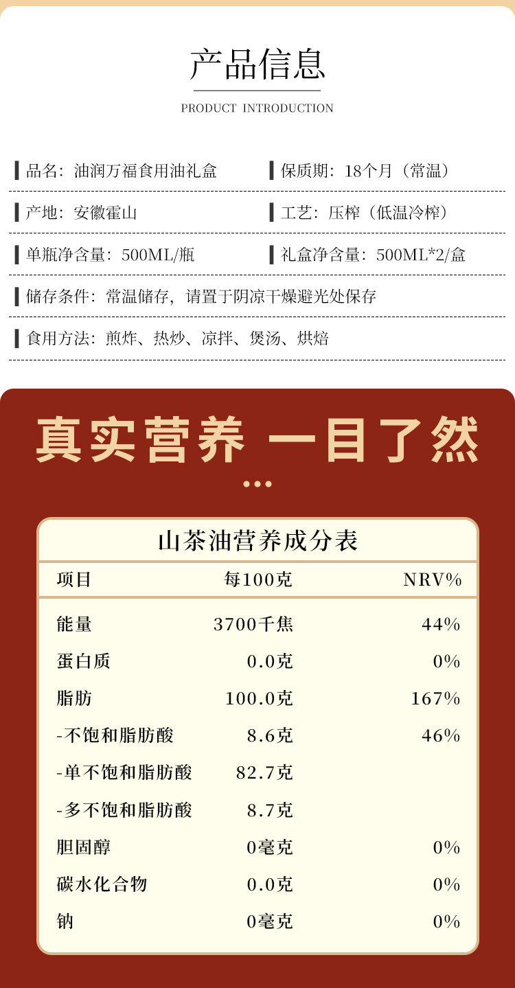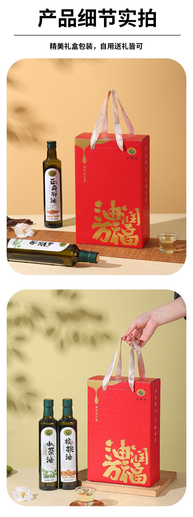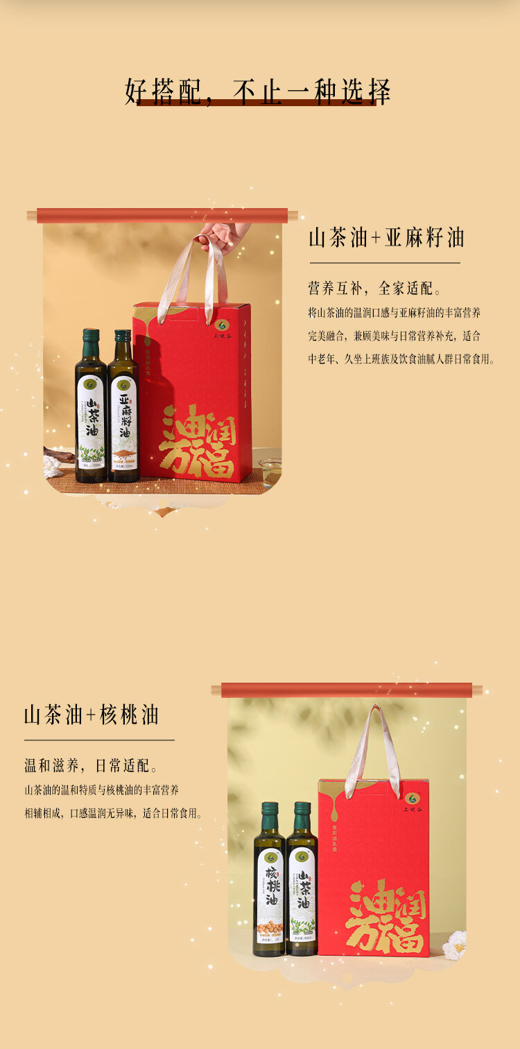 油润万福礼盒(山茶油500ml+亚麻籽油500ml)