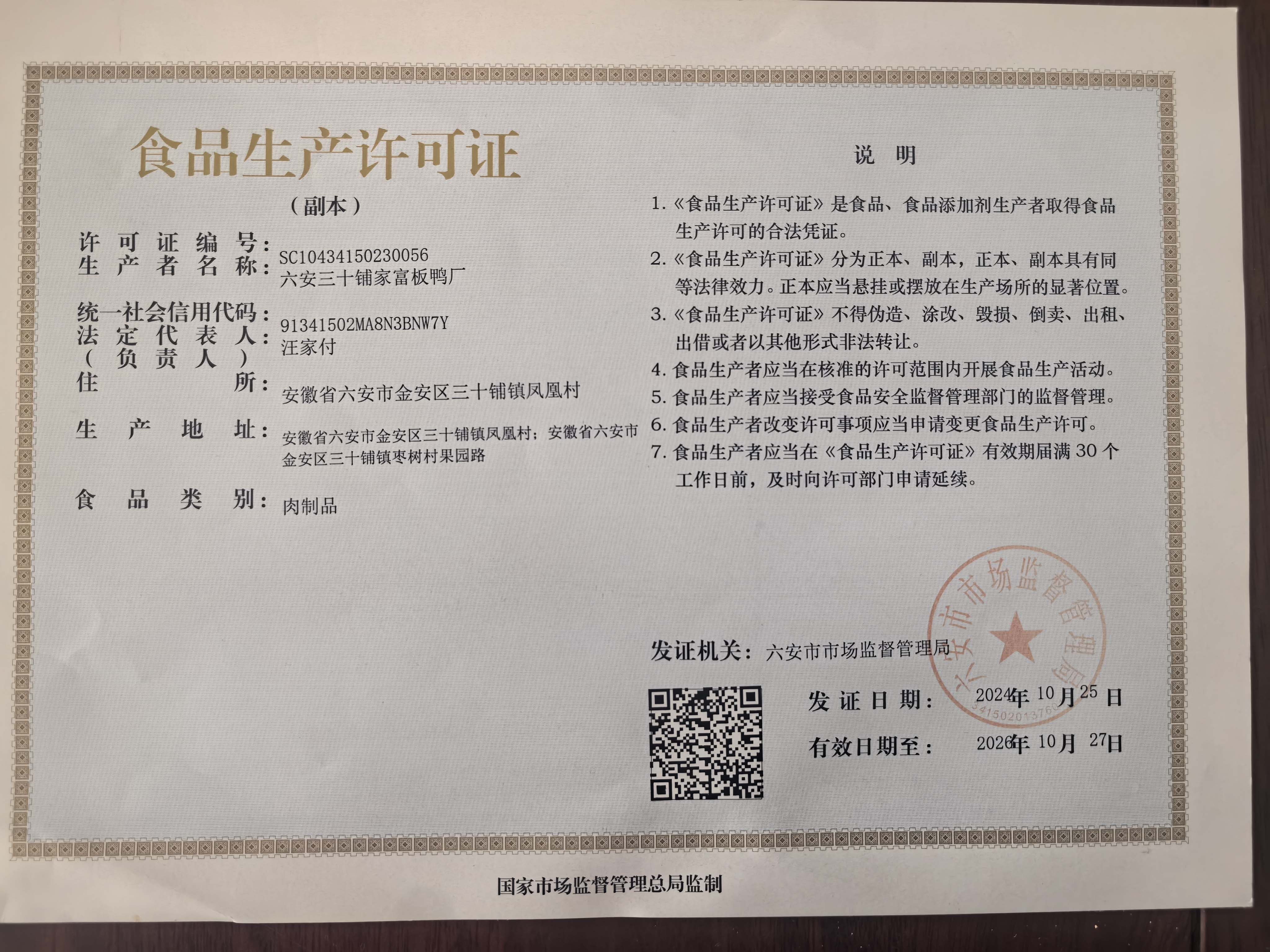 六安三十铺家富板鸭厂成立于2021年08月11日,注册地位于安徽省六安市金安区三十铺镇凤凰村,法定代表人为汪家付。经营范围包括许可项目:家禽饲养;水产养殖;食品生产;食品销售(依法须经批准的项目,经相关部门批准后方可开展经营活动)一般项目:食品销售(仅销售预包装食品);水产品批发;水产品零售(除许可业务外,可自主依法经营法律法规非禁止或限制的项目)