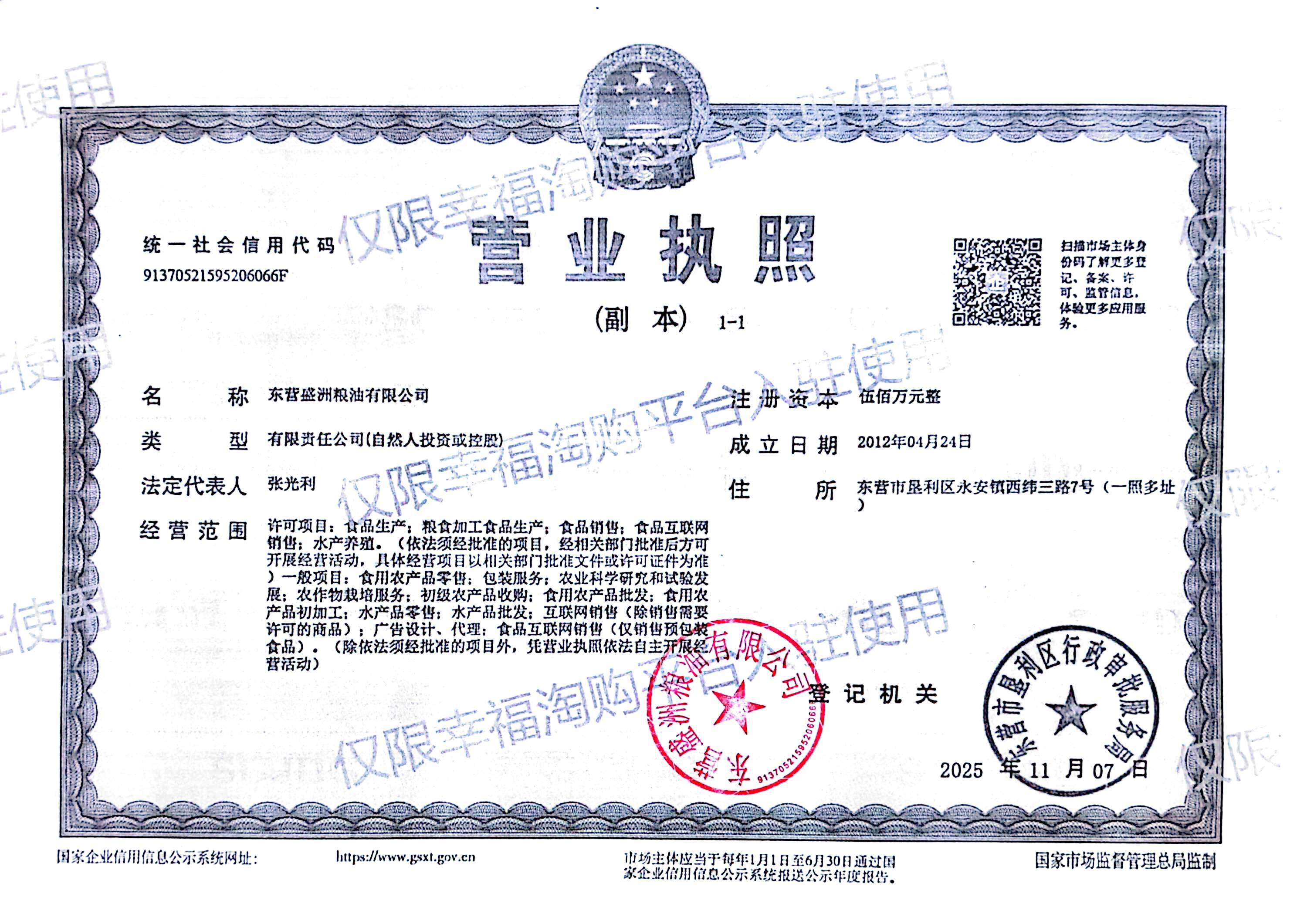 我公司成立于1999年,前身隶属于垦利区粮食局,自2012年变更为有限责任公司。成立30年来,建成了以种植加工销售为一体的黄河口农特产品产业链条,培育的“黄蓝汇“黄河口”、“黄特”、“0546”等品牌已在行业市场中崭露头角。除此之外我公司还是东营市重点龙头企业东营市精品旅游促进会优秀会员单位、中国国际商会东营商会特色商品专业委员会理事单位、黄河口农品产销协会秘书长单位。先后获得全国企业征信体系公示系统“质人金信用雀业量·服务·诚信AAA企业”“全国重合同、守信用企业、“AAA级诚信供应商”和“爱心企业“等荣誉称号
