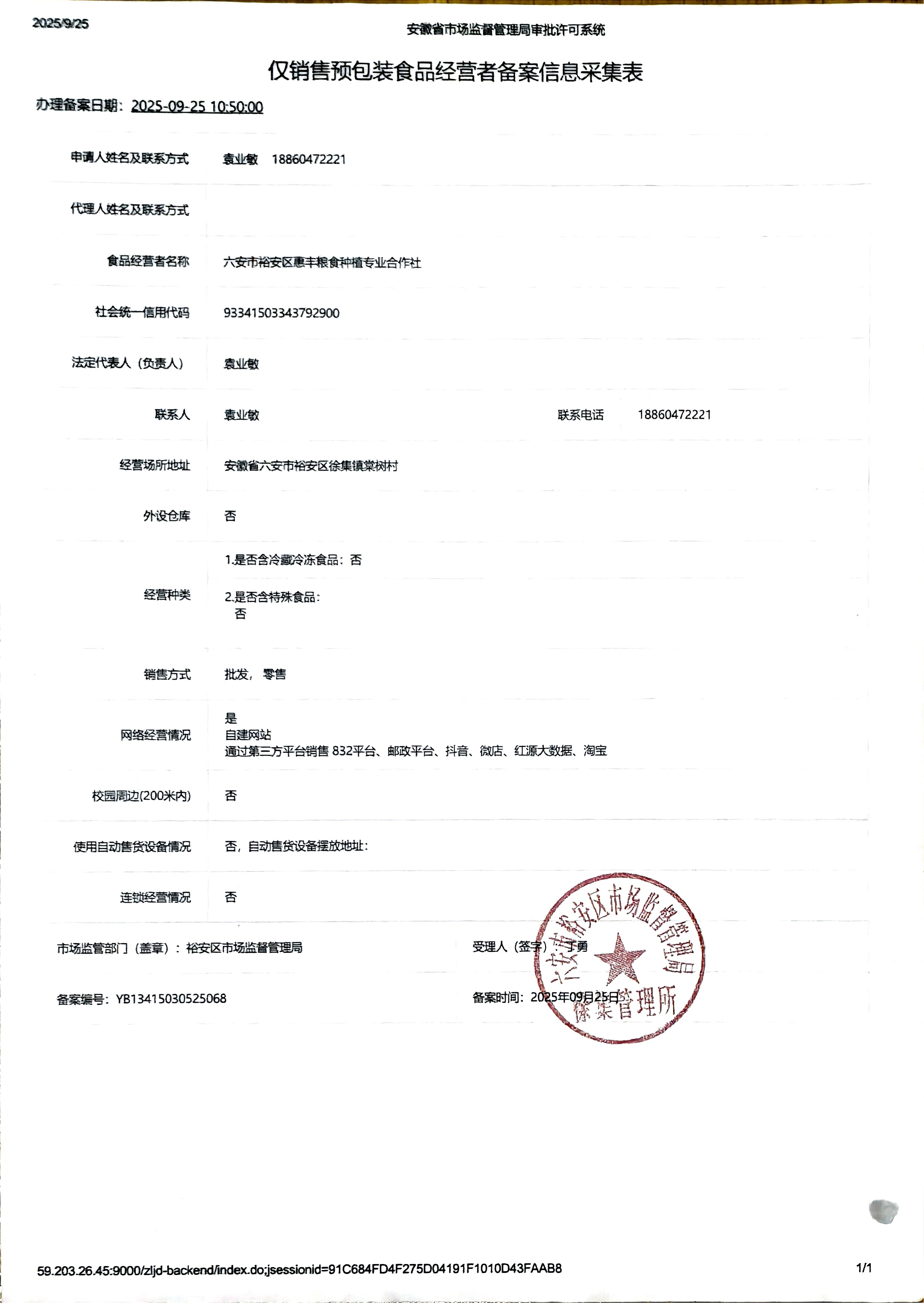 六安市裕安区惠丰粮食种植专业合作社,成立于 2015 年 5月22日,占地面积 4800平方,建筑面积 1500 平方,员工28 人,主要产品惠丰虾稻米、惠丰稻香米,合作社年营业额约 3000万。基地位于风景优美,土地肥沃的裕安区徐集镇棠树村与梁集村之间,该两村已于2016年被评为美好乡村。毗邻 S244 省道和 009县道,总面积 3000多亩,核心区种植面积 1300多亩,主要从事水稻、大米小龙虾、收购、烘干、加工、销售、稻渔综合种养殖等和谐生态的模式经营。
