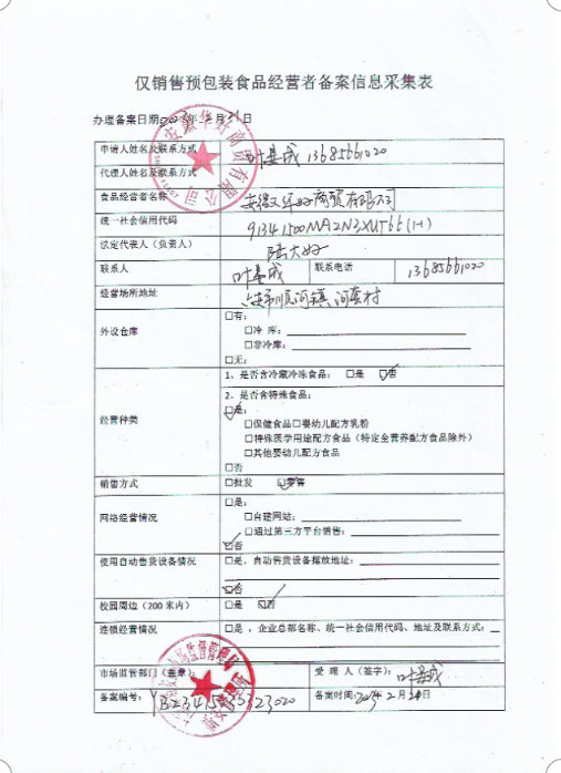 2、仅销售预包装采集表