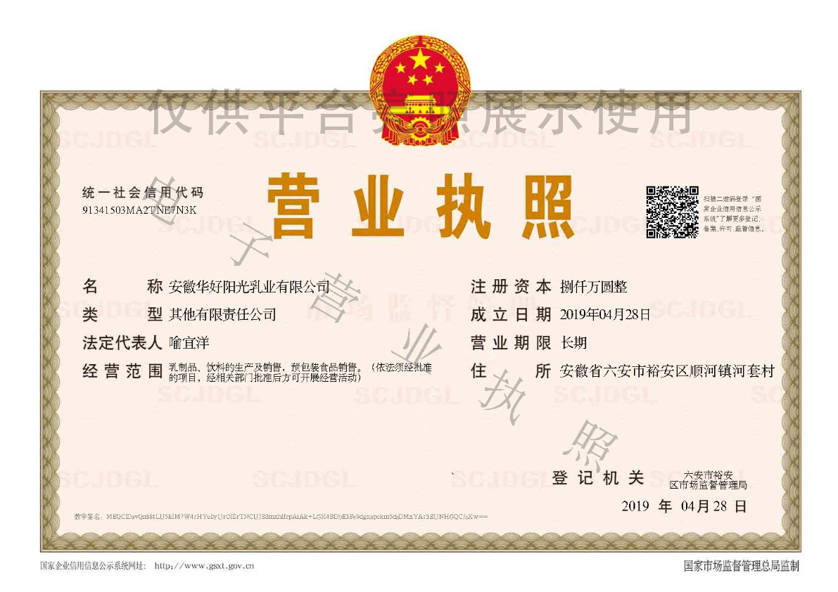 安徽华好阳光乳业有限公司是一家集牧草种植、奶牛养殖、乳品加工、新品研发、市场营销、物流配送为一体的全产业链乳品企业。是江西阳光乳业股份有限公司的控股子公司,总投资5亿元,建设乳制品加工厂、奶牛养殖基地、牧草种植基地。专注奶牛养殖、乳品加工、冷链物流和新鲜牛奶配送入户业务,致力于为客户提供更优质、更新鲜、更安全的牛奶产品。