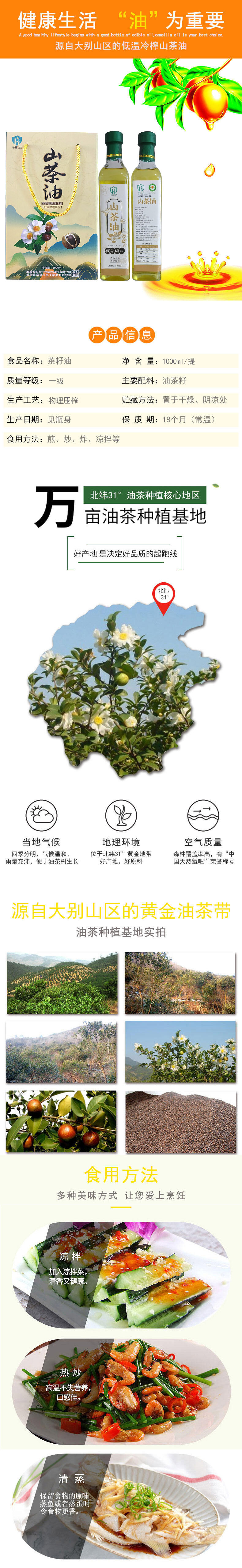 华养牌裕安山茶油1000ml/提(500ml*2瓶)