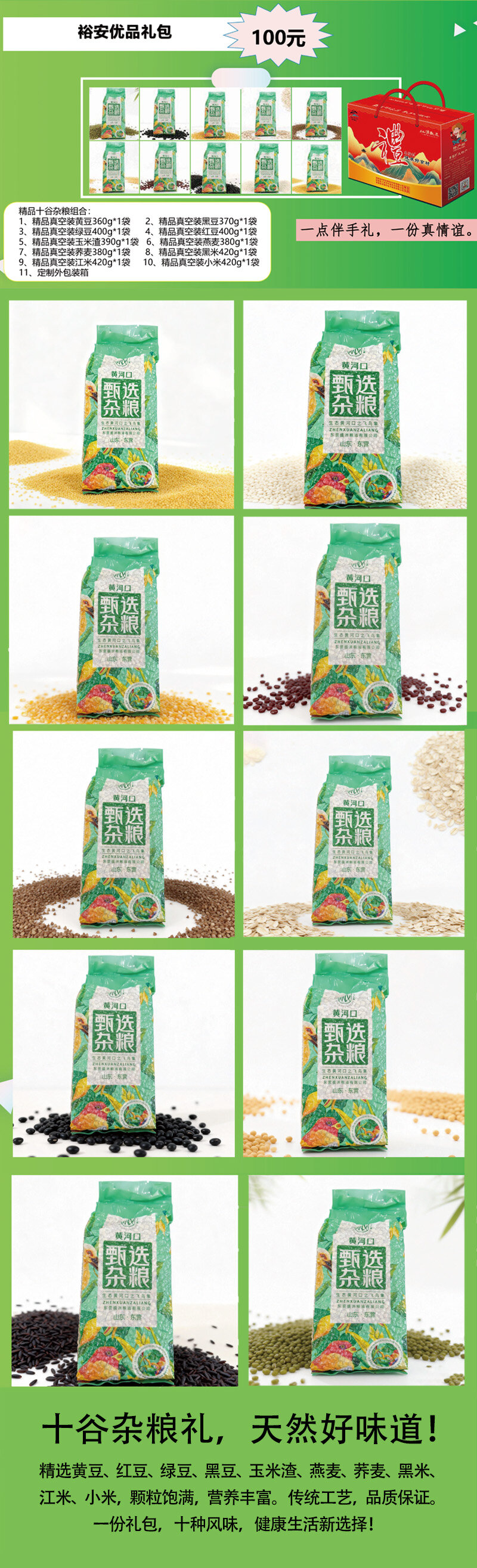 黄豆360g、黑豆370g、绿豆400g、红豆400g、玉米渣390g、燕麦380g、荞麦380g、黑米420g、江米420g、小米420g