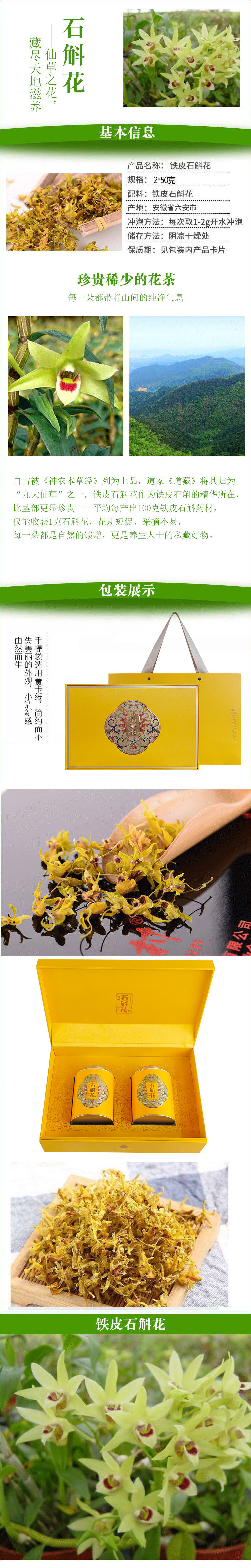 幸福村牌铁皮石斛花 铁皮枫斗花茶 应季新花2*50克